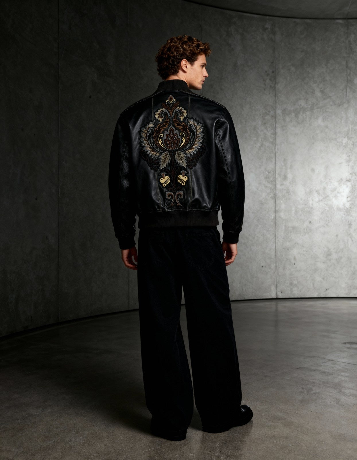 Throneborne –Handcrafted Embroidered Leather Bomber Jacket